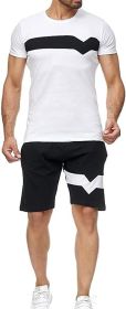 Men's Splicing 2 Piece Tracksuits Casual Short Sleeve Shirts and Shorts Suits (Color: White, size: L)