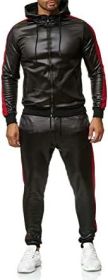 Men's 2 Pieces Tracksuits PU Leather Casual Running Jogging Athletic Outfits Suit Full Zip Sports Sweatsuits (Color: Red, size: XL)